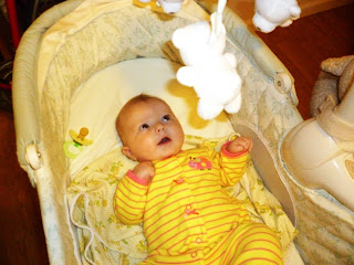 Temperament: Calm and mellow; you like looking around and thinking your baby thoughts; you are much more cheerful now though, full of smiles when Mommy or Daddy interacts with you