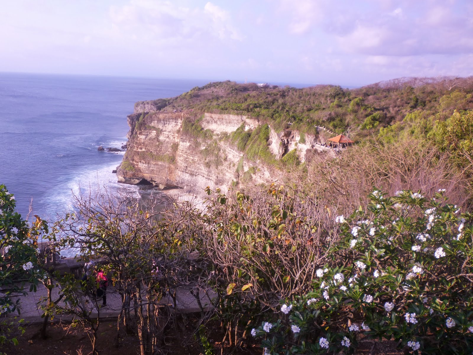 After little R had her second nap, we hired a taxi and drove out to the temple Ulu Watu, which is on a cliffside in the far southwestern corner of Bali. It was an truly stunning setting. The temple is one of Bali's most important, and was full of both tourists and thug monkeys, who steal hats, glasses, cameras, and anything else they can get, and then hold these items for "ransom", until they receive some food. As a result, most of the older monkeys are obese and look like fat couch potatoes. I made B hold little R as I was worried about the monkeys kidnapping her!