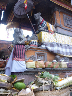 In the afternoon, little R, B and I went for a walk through the countryside around Ubud, which is still mostly rice paddies and small villages (although these now all sell things for the tourist trade like wooden statuettes). It was very beautiful and relaxing. My father in law went shopping for some souvenirs (he bought a painting): a win-win as I don't really like shopping for stuff, especially with a baby in tow.