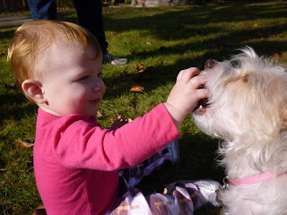 They follow each other around the house, share food (little R loves feeding Pixie from her high chair; Pixie has now learned to beg), play tug of war and fetch (little R learned how to throw so she could play with Pixie), and generally have a fine old time. Sometimes Pixie suffers (like when little R pulls her fur out, or tugs on her paws while Pixie is trying to take a nap), but she is very patient and tolerant. She even lets little R eat out of her food bowl (I could do with a little less tolerance from Pixie in this area).