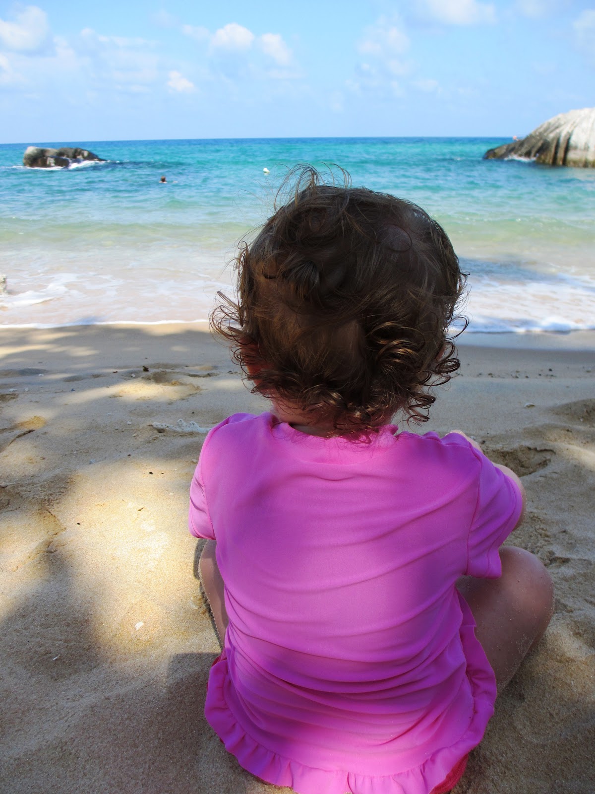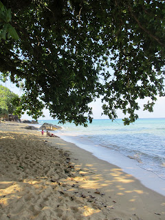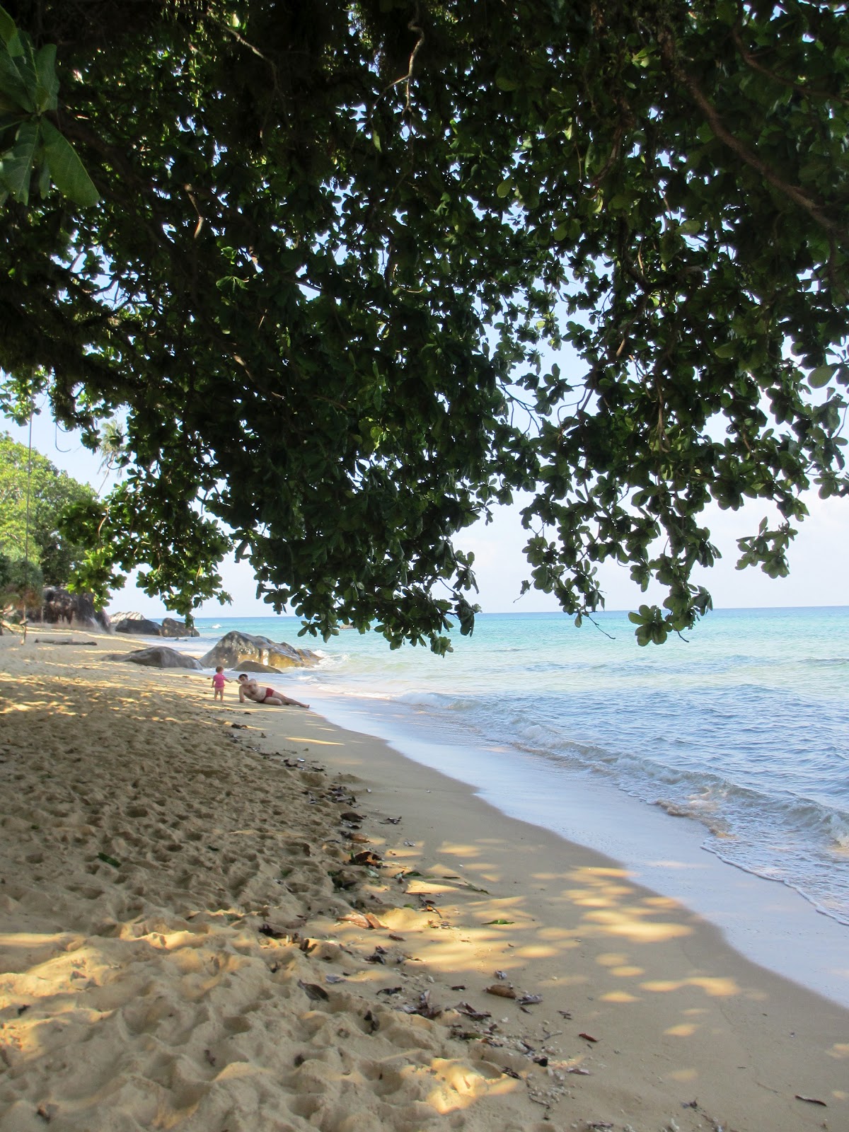 We spent the morning playing on the sand. I went snorkeling, but only for a short while. Little R found it traumatic and had hysterics at the sight of me disappearing under the ocean waves. B tried to amuse her but it was no good. All she would say is, "Na Na Na! Mummum! Mummummmm!", while waving her hands frantically, tears running down her cheeks.