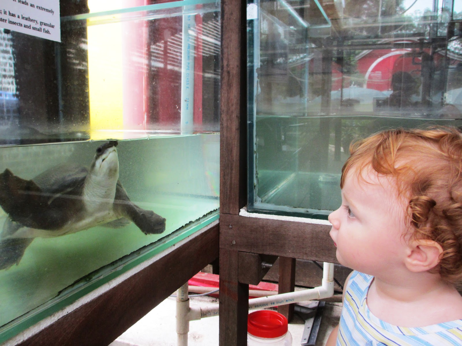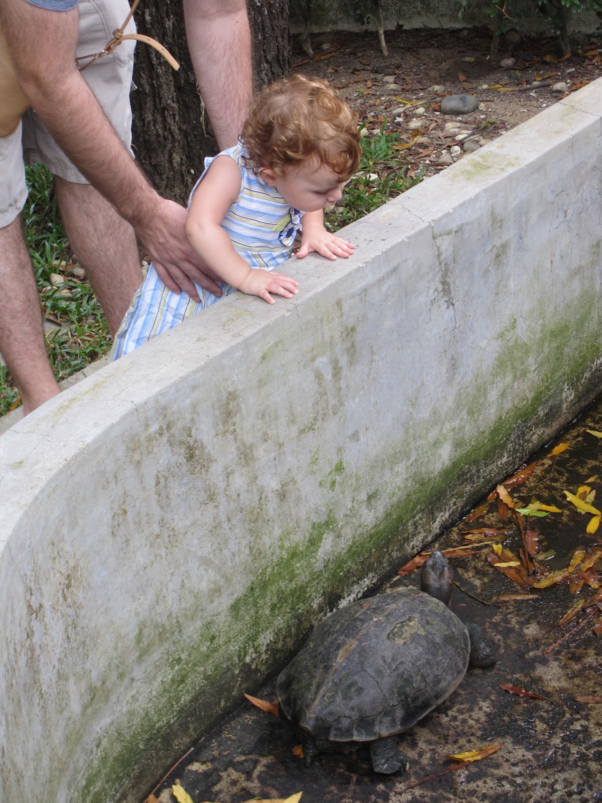 | Little R wanted to climb in the turtle enclosure for a closer look |