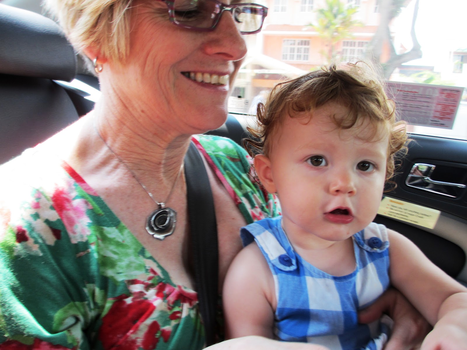 The taxi ride was around 5 hours, which was slightly unpleasant due to R's dislike of sitting still. But since it was our own private transportation, and there were four adults to amuse her, it was mostly pretty pleasant. The main issue was the taxi within Malaysia, which seemed to be on its last legs. I was worried it would break down before we got there. Luckily this didn't happen.