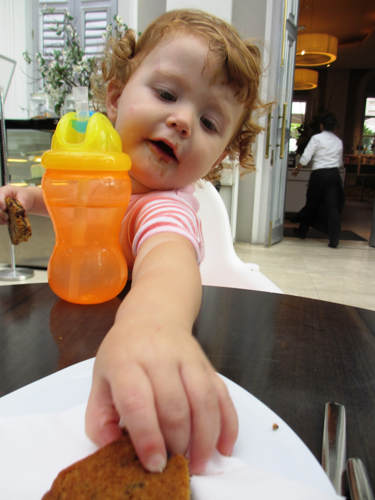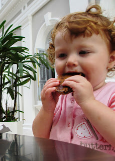 my stupid milk allergy) so I bought R a cookie instead, to live vicariously (the cake pieces were way too big for a baby to eat by herself). She loved it! It was really cute watching her. I'm glad she isn't allergic!
