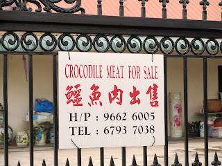 We had to walk quite a distance on the way home (as we just missed the bus, and weren't able to catch a taxi), past Singapore's "rural district" (there are several farms here, including a crocodile farm: and yes, this meat is sold in our local supermarket).