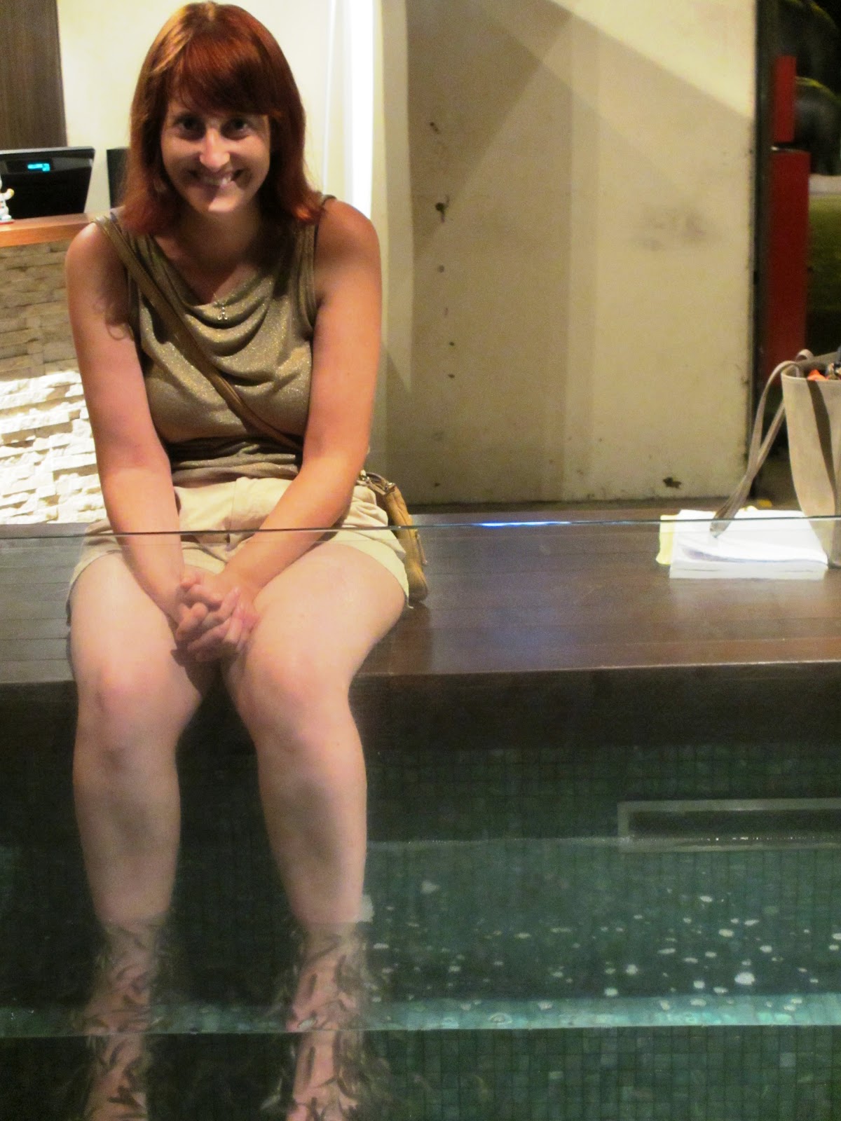 I got my feet groomed at the fish spa. Basically you stick your bare feet in a shallow pool full of a particular fish species, who then swarm your feet, eating all the dead skin. It's supposed to have health benefits, in addition to making your feet beautiful. It was interesting and not painful (it feels like tickling). Everyone else was too grossed out by the idea (wimps!).