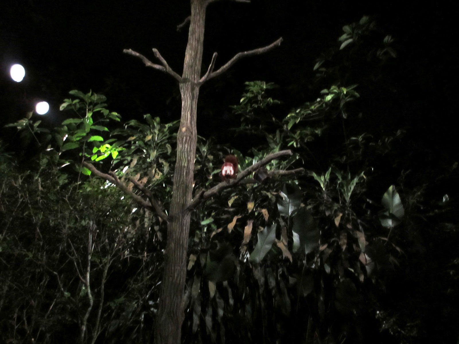 It was a most productive day in terms of wildlife viewing: we saw monkeys, junglefowl, various birds, and wild boar with piglets. Back on land we dined near the pier (Western food, including imported beer), where I spotted a flock of wild parrots.