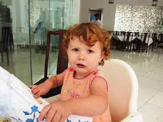 Luckily we were the only people there (as I would have otherwise been worried about R injuring the upscale atmosphere). She ate hummus and pilaf like a champ.