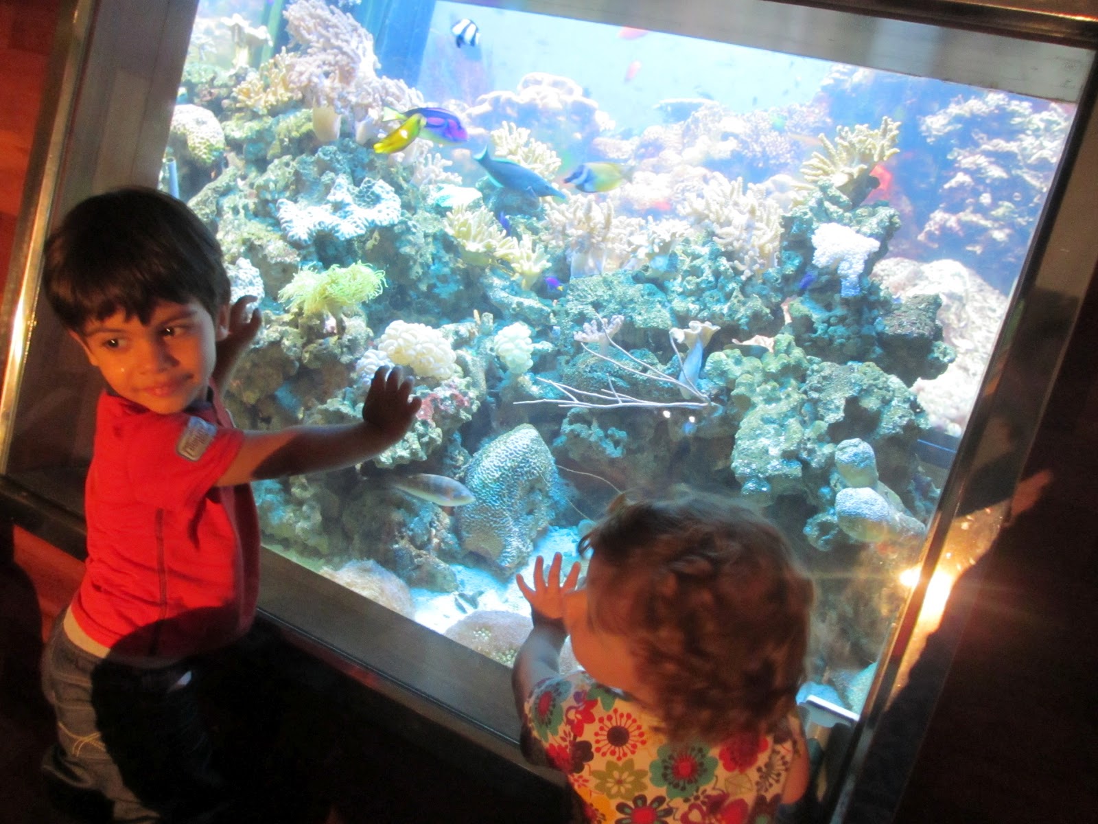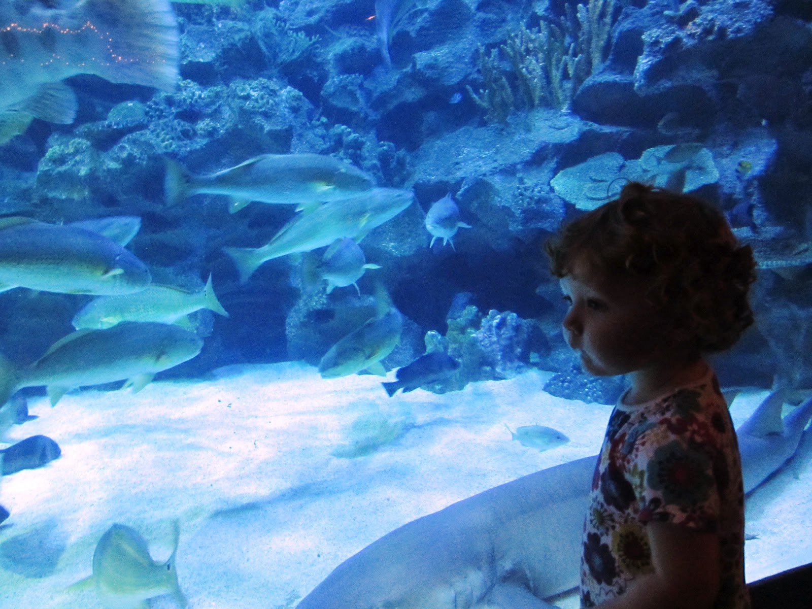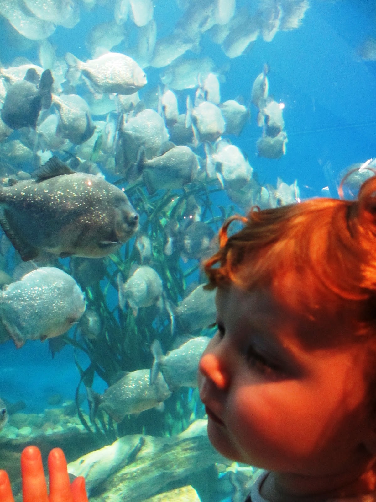 | R checking out the piranhas: I didn't realize they are sparkly, just like Twilight's vampires! |