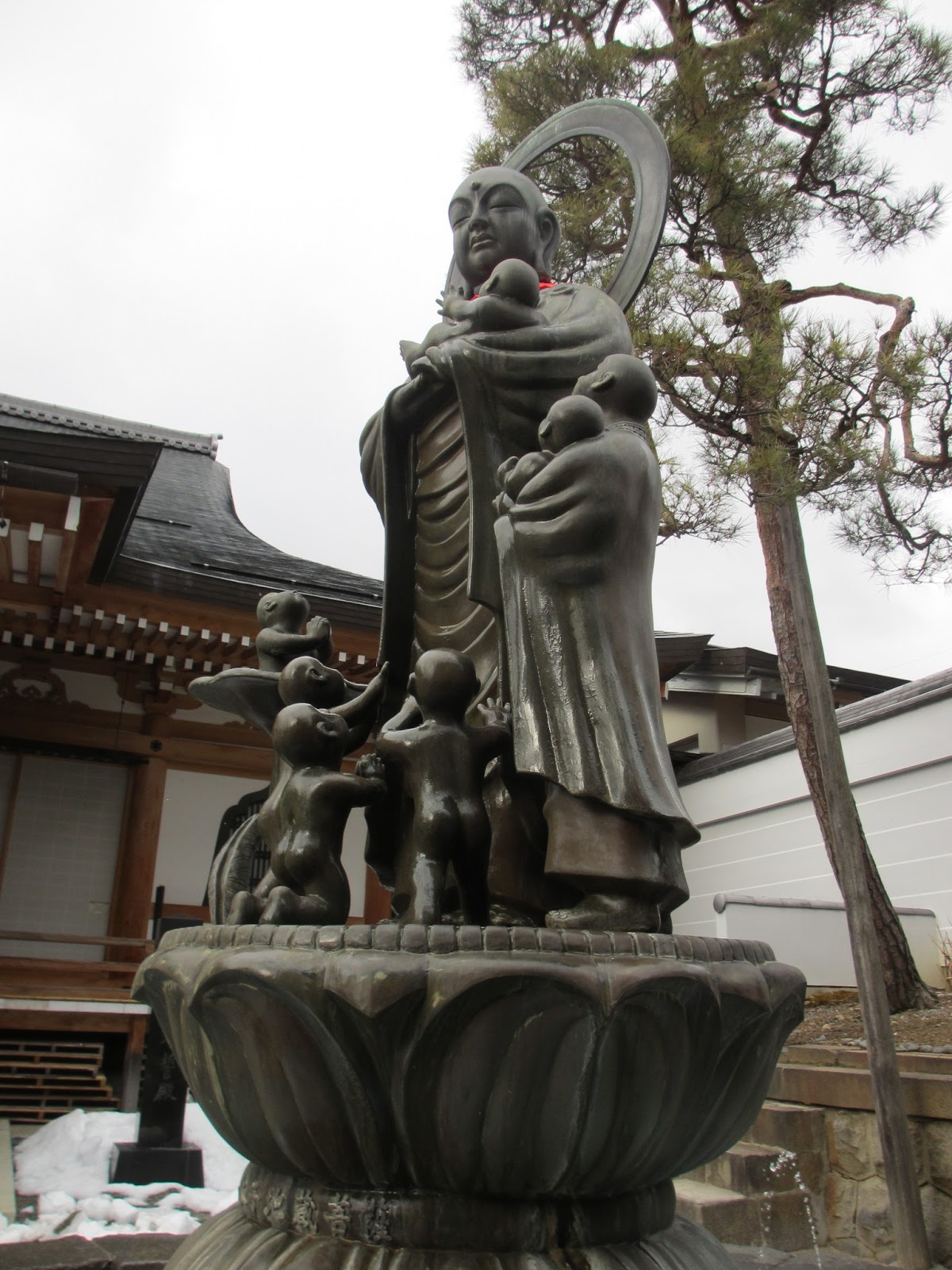 We didn't have too long to spend in Nagano, but thanks to our location we were able to thoroughly explore Zenko-ji and its nearby temples. In one of the inner temple chambers, a narrow staircase leads to a completely dark tunnel built under the main hall: pilgrims walk through here to cleanse their sins and gain enlightenment. A highlight for me was creeping along the pitch black passageways (such an interesting experience!): rather to my surprise, R was brave as a lion and did not object at all to this activity (if anything, it seemed to improve her mood as she was rather grumpy from jet lag).