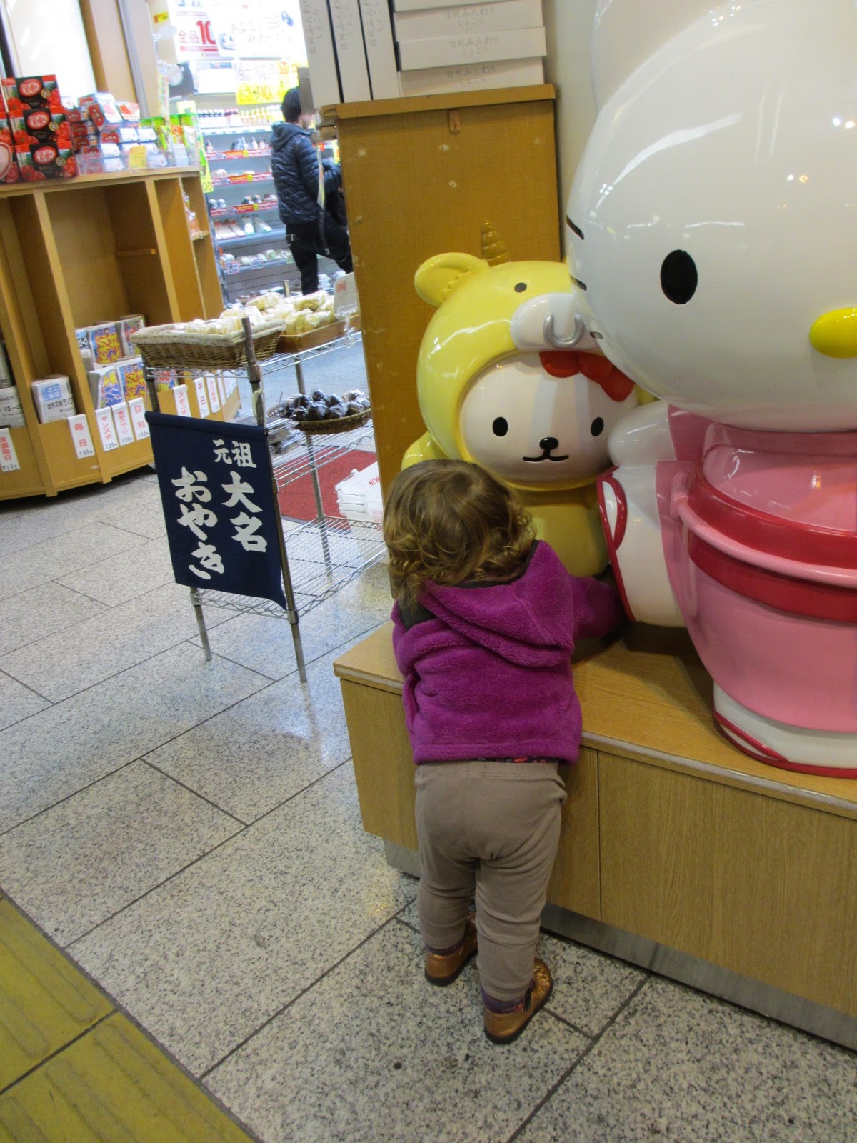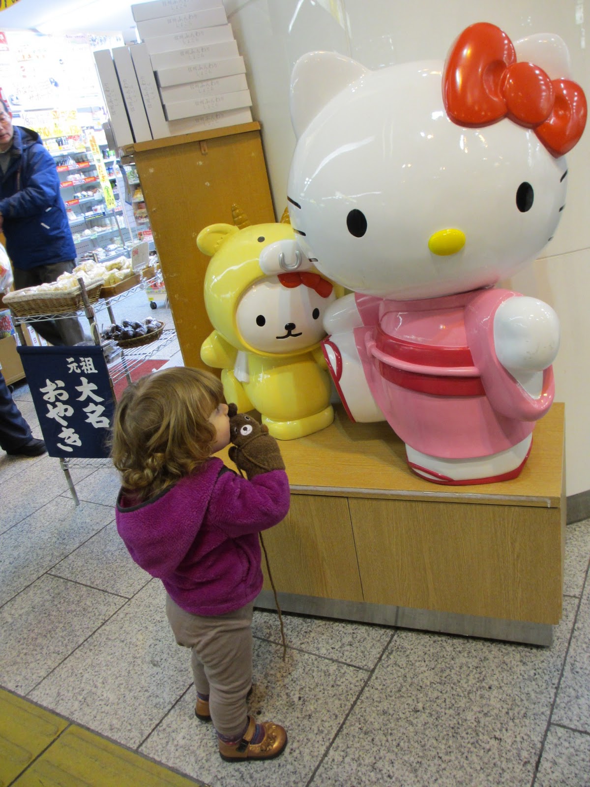 R also discovered a deep love for Hello Kitty (who she was not familiar with before our visit). This character is ubiquitous in Japan, popular among all ages (there is even a Hello Kitty Land).