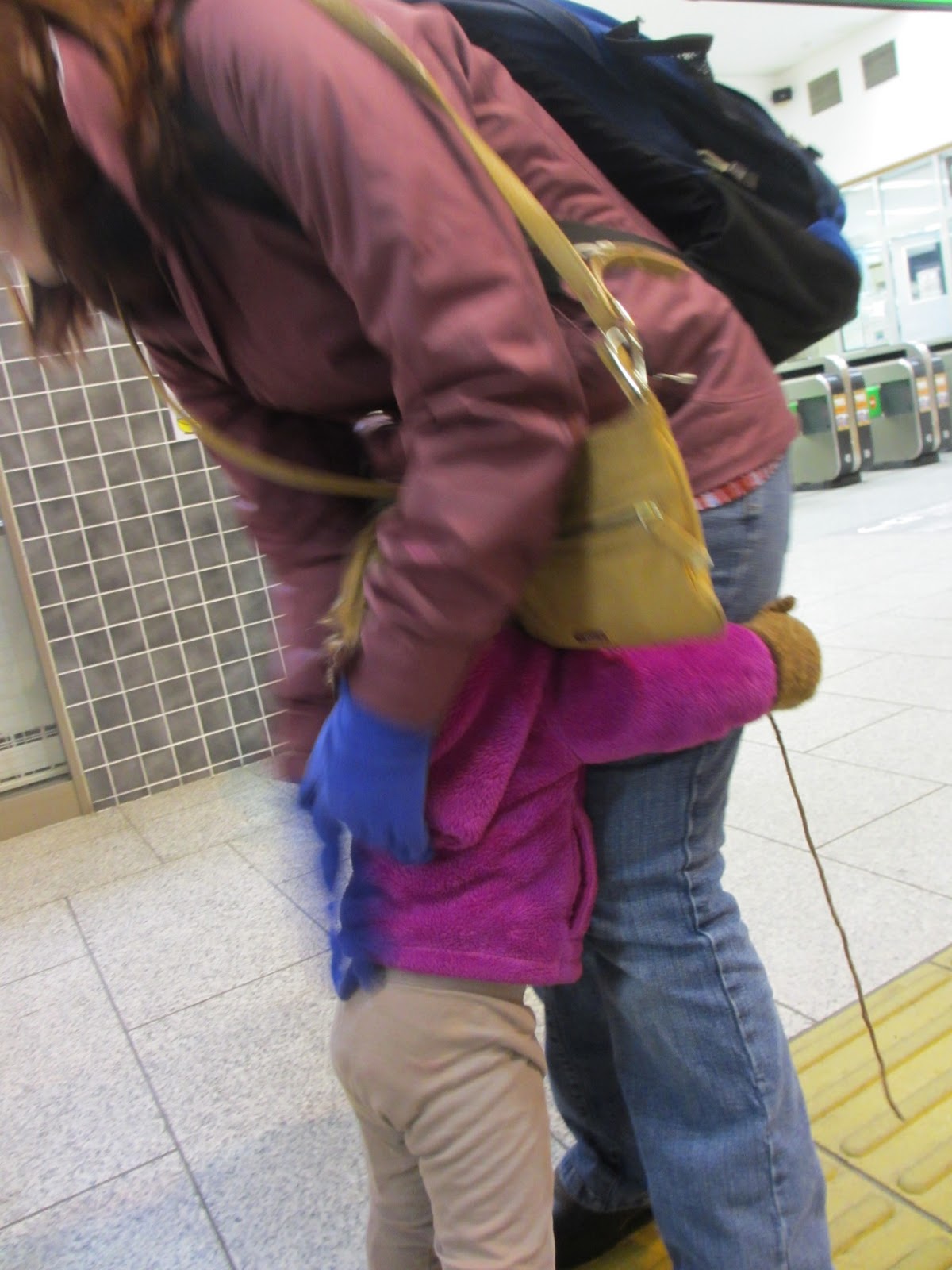 One of the elements of Japanese culture R especially appreciated was their love of everything cute. For example, most pharmacies identify themselves as such by placing a several-foot-tall elephant statue at the entrance. Because it was winter (and elephants don't have fur I guess?), most of these statues had been dressed in little dapper outfits (which given the proportions of the statues must have been specially made for just that purpose). R loved them all and stopped every time we passed one to greet and hug the statues.