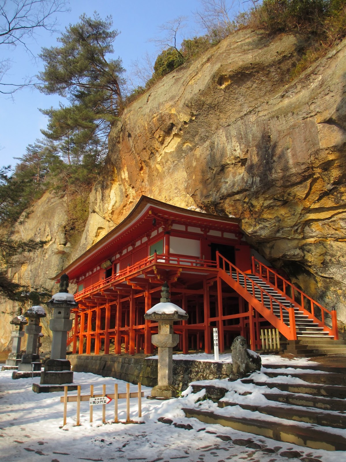 | A Buddha's face is carved into the cliff: it's the northernmost in Japan |