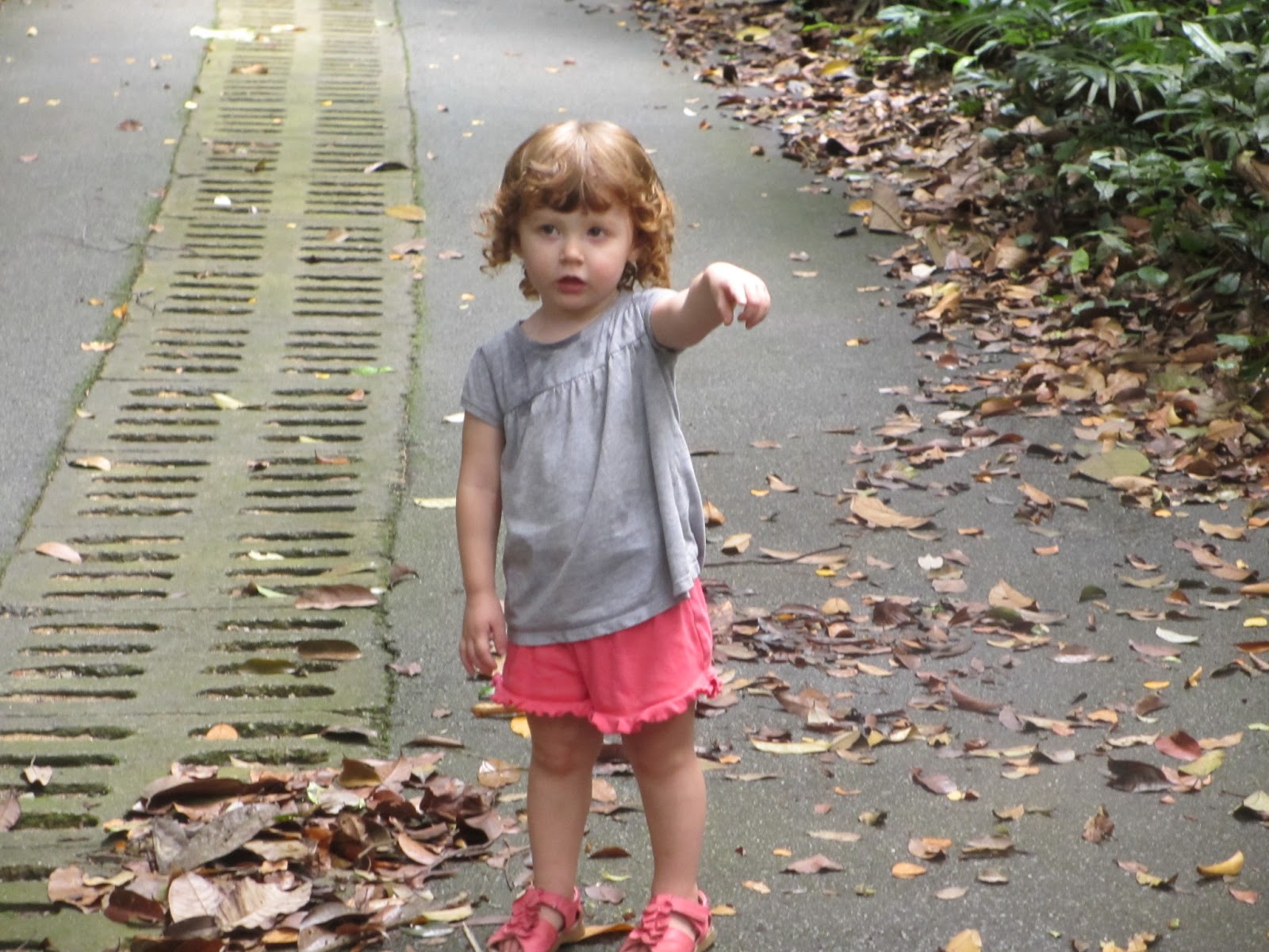 The main trail to the summit is paved if steep (you can even push a stroller on it, which we've done when R was smaller), and at least on weekends is relatively crowded. However, there are dozens of side trails which are totally deserted (Singaporeans are not big nature lovers, especially if the experience involves dirt and discomfort).