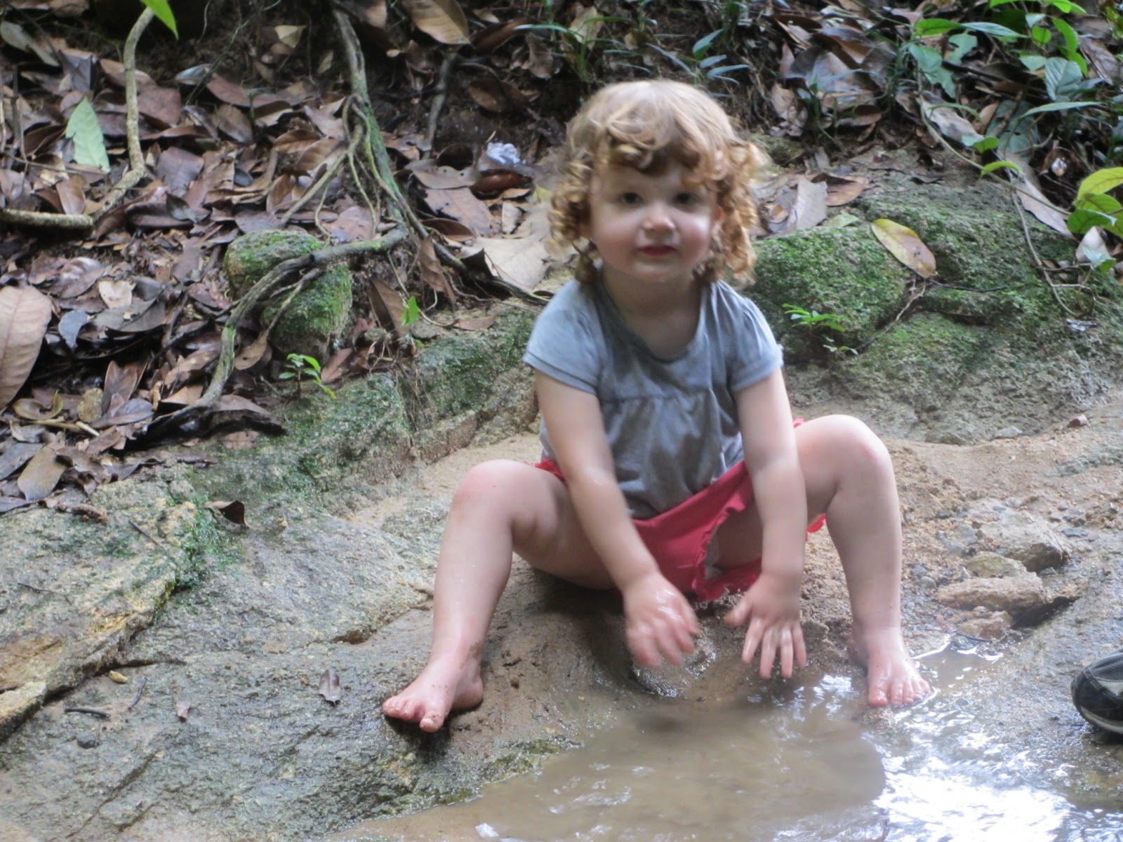 | This is really rugged! (yes, the branches are the path, up a hill so steep you must climb it mostly on all fours: we helped R so that she wouldn't fall, but she climbed like a champ) |