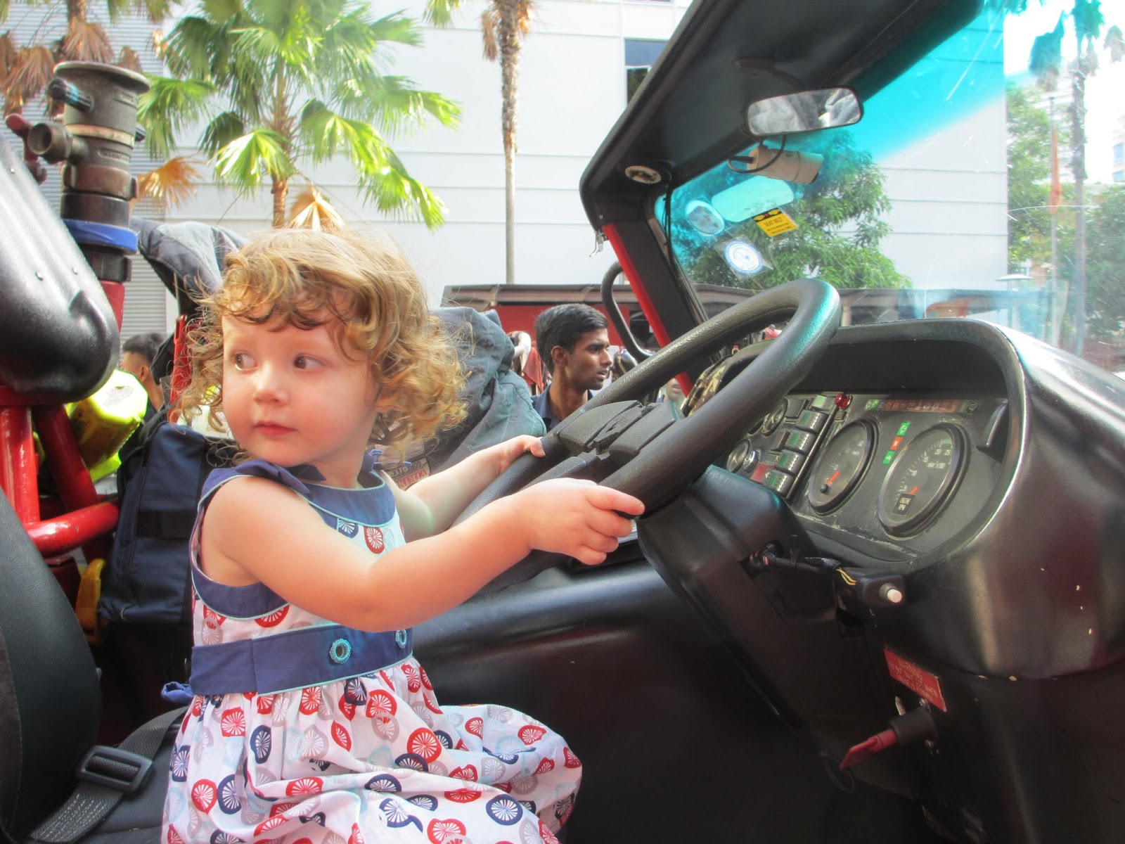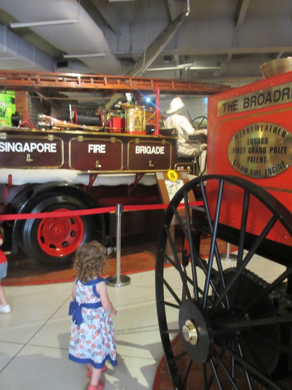 This Saturday R was finally getting better (she's had a sinus infection for the last week) so we visited Singapore's main fire station with a little friend of hers. R is quite interested in firefighters (she loves reading