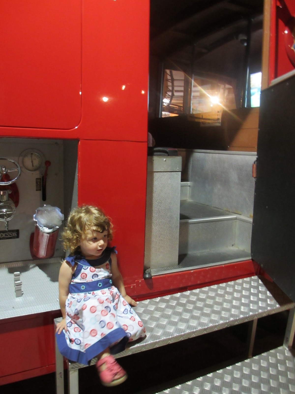 | And chances to dress up in firefighter costume: sadly R didn't want to wear it (her friend was really cute though!) |