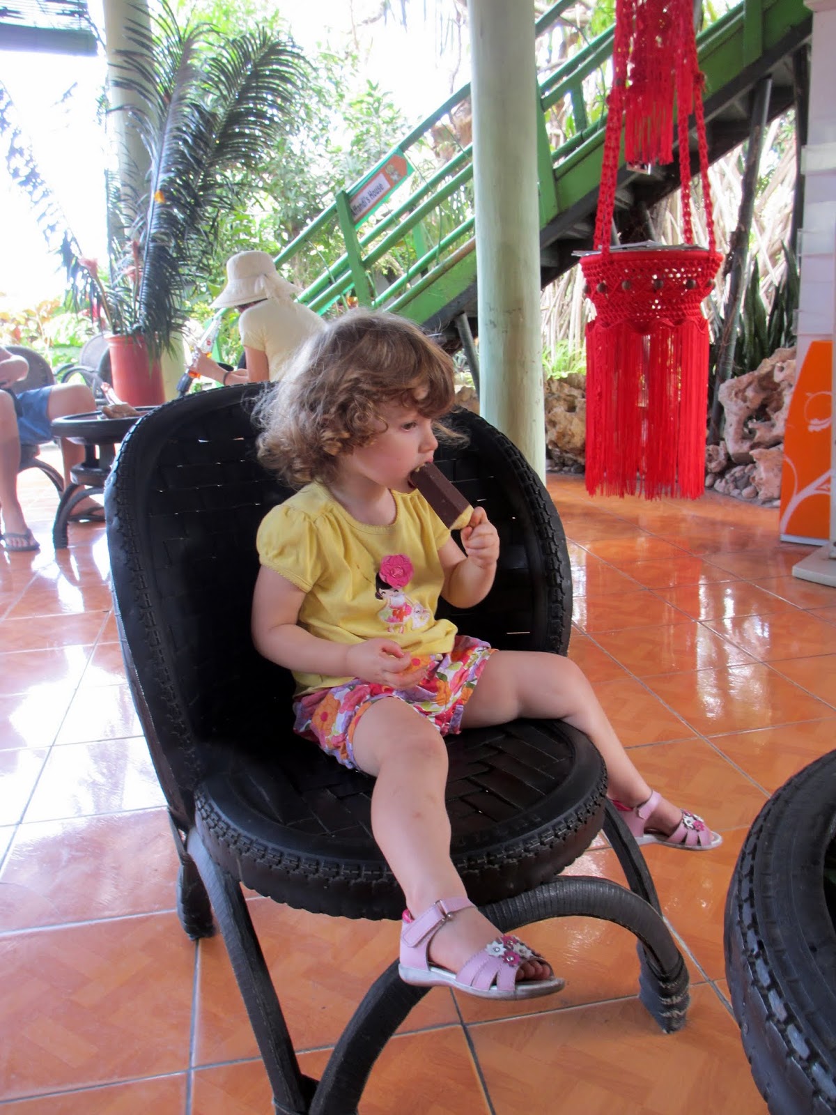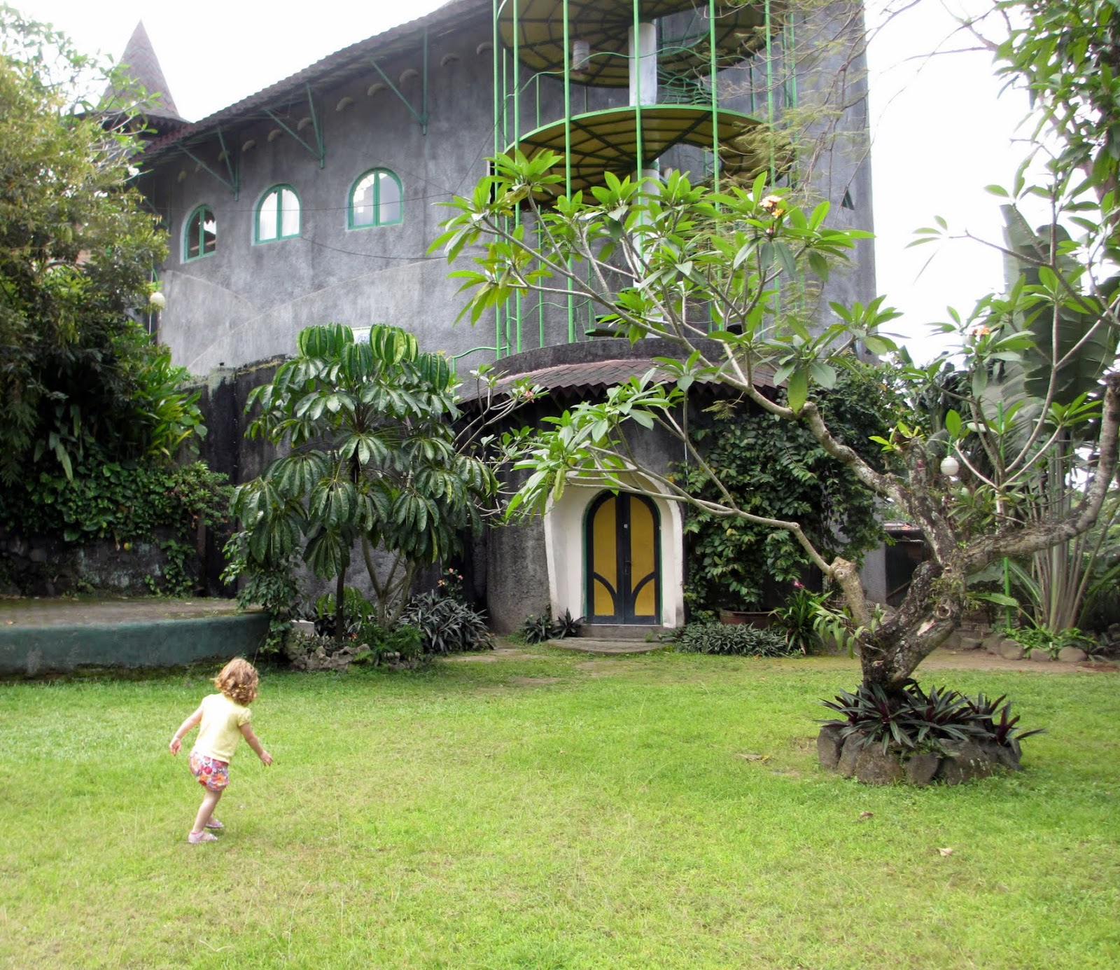 All the outdoor space was really fun for R. She had a good time running around in the grass and climbing up and down the numerous staircases (everything is on multiple levels connected by quirky balconies and platforms).