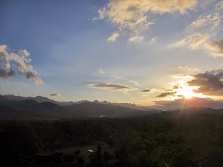 The setting of Borobudur is quite lovely, as it's surrounded by mountains (some of which are volcanic).